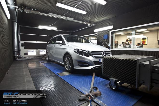 Same engine as the B250 210HP, simply electronically limited in the engine management unit.